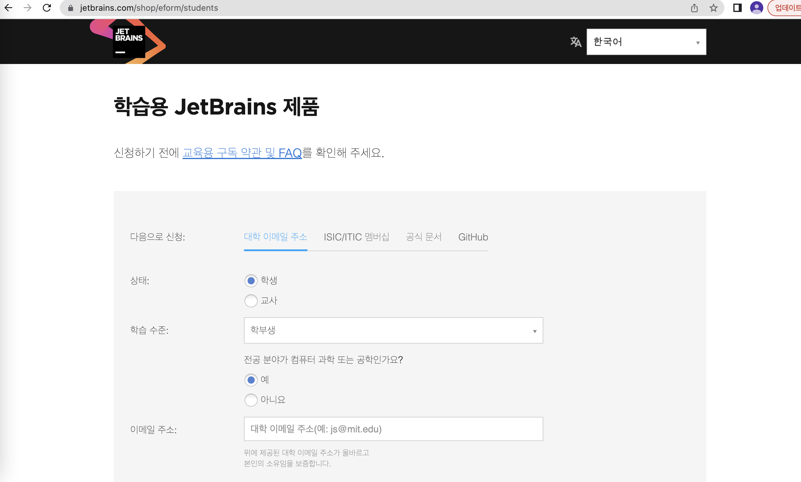 https://www.jetbrains.com/ko-kr/community/education/#students