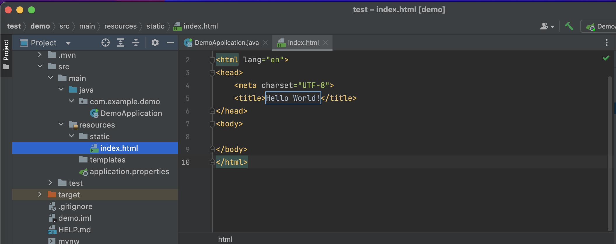 9. static 폴더 밑에 index.html을 생성해준다.