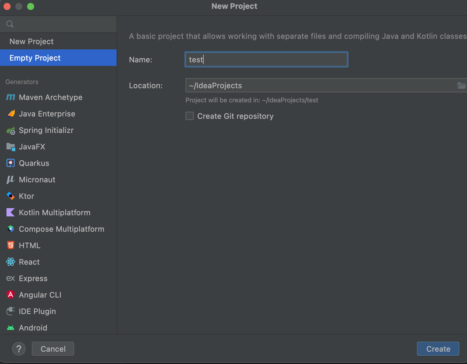 2. New project 눌러서 Empty Project 생성한다.