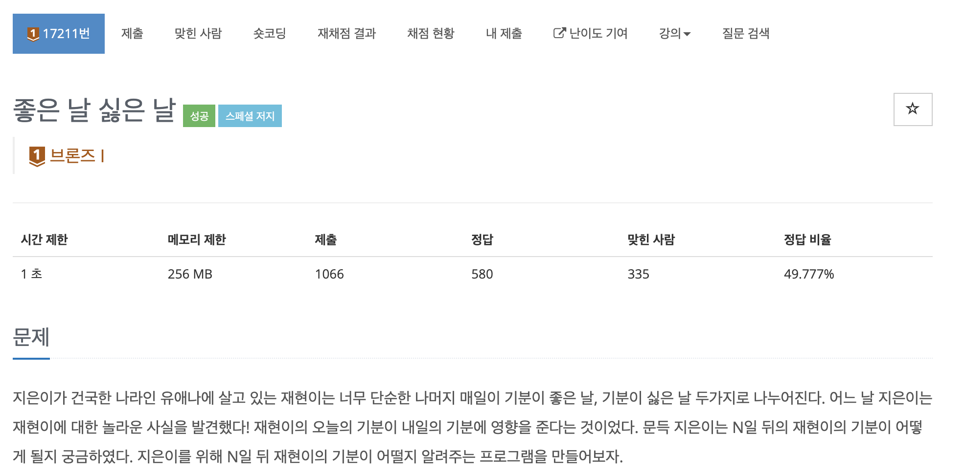 g_g, g_b, b_g, b_b은 각각 좋은날일 때 또 좋은날일 확률, 좋은날일 때 나쁜날일 확률, 싫은날인데 좋은날을 확률, 싫은날이고 또 싫을날을 확률을 의미한다.